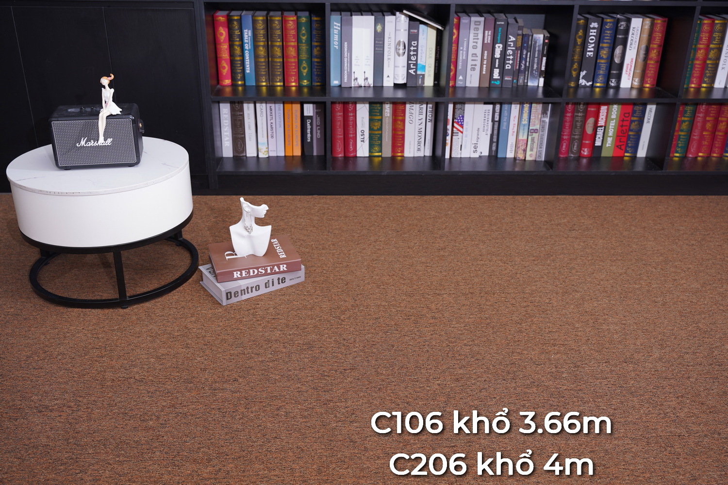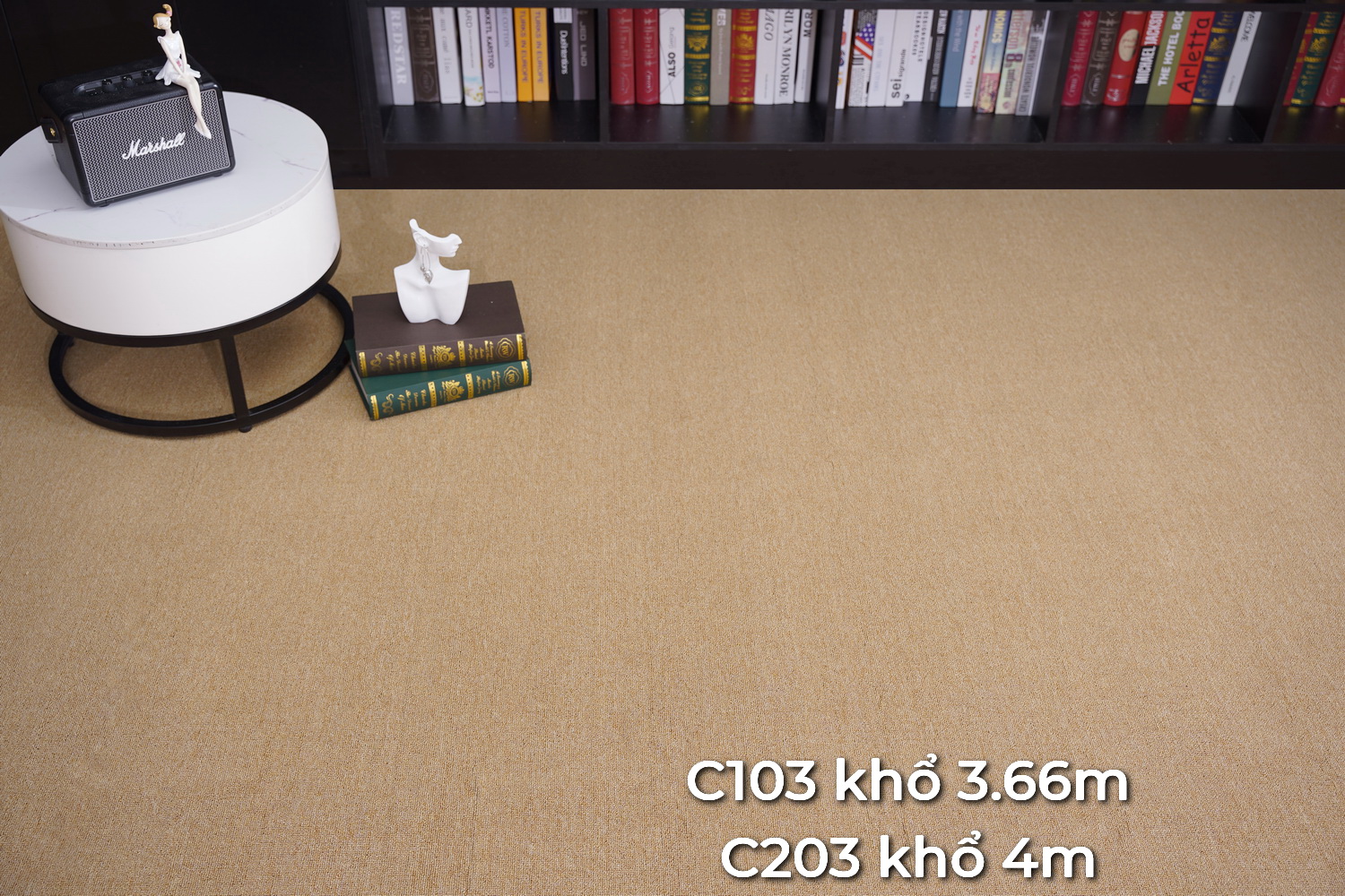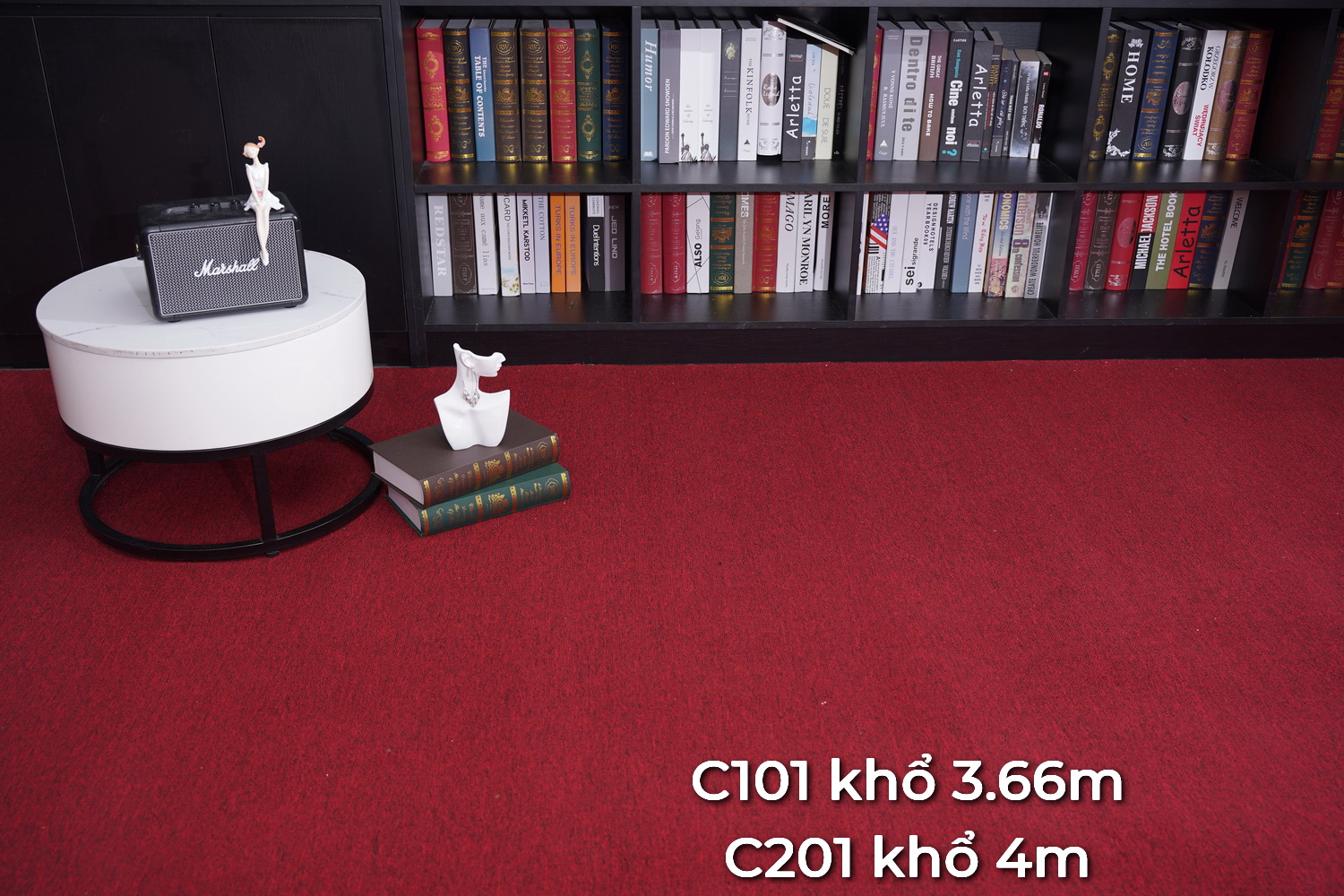 Thảm cuộn Rainbow-C là dòng thảm cuộn màu trơn được sử dụng rộng rãi trong các công trình hiện đại như văn phòng, hội trường, khách sạn và khu thương mại. Với khổ thảm lớn 3.66m hoặc 4m, Rainbow-C giúp thi công nhanh chóng, hạn chế mối nối, mang lại bề mặt sàn liền mạch, gọn gàng và tính thẩm mỹ cao. Nhờ sở hữu nhiều ưu điểm vượt trội về độ bền, tính ứng dụng và giá thành, thảm cuộn Rainbow-C luôn là lựa chọn hàng đầu của nhiều chủ đầu tư.