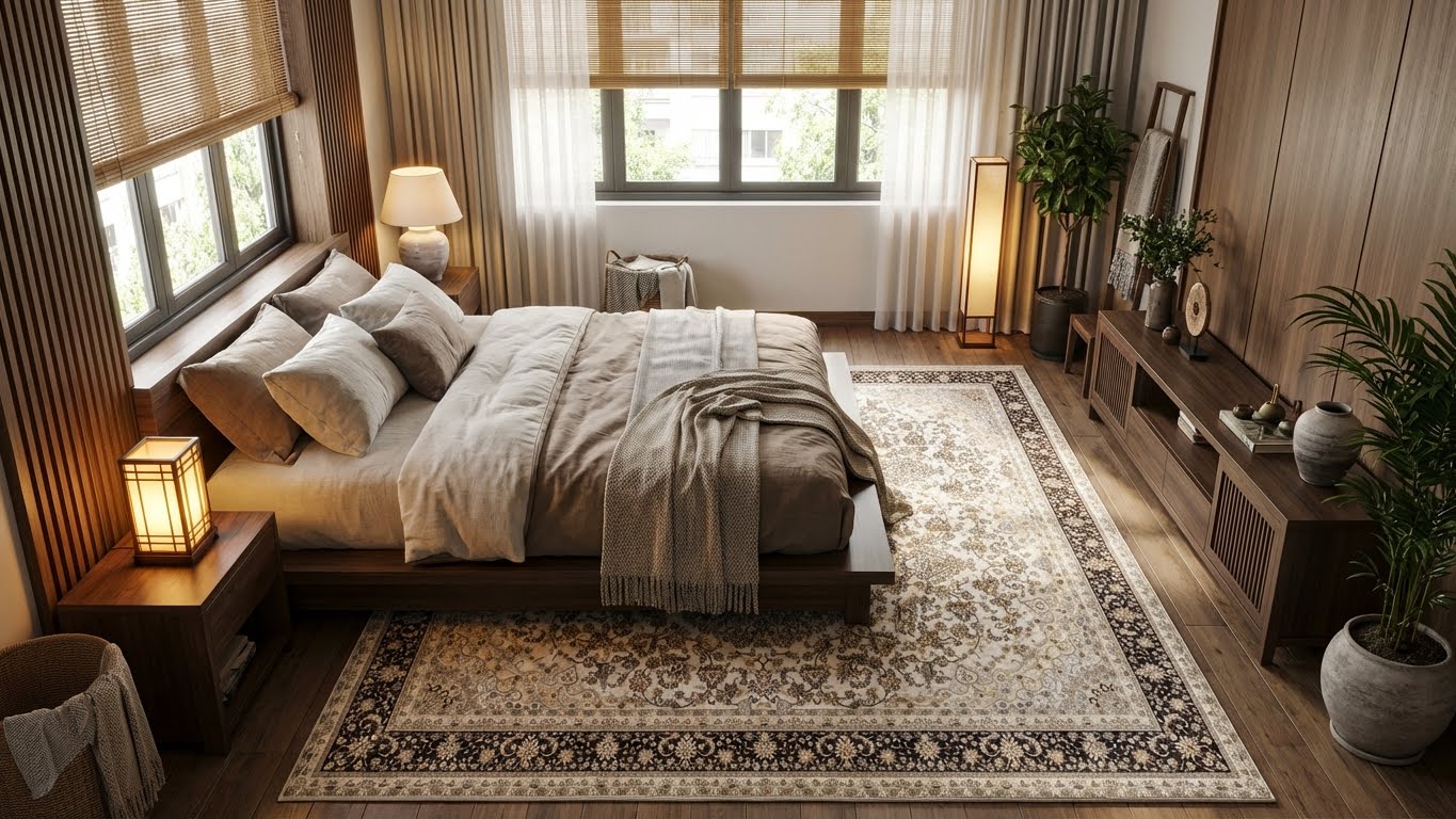 - Đế thảm polyester cường lực kết hợp sợi lanh: bám sàn chắc chắn, tăng tuổi thọ