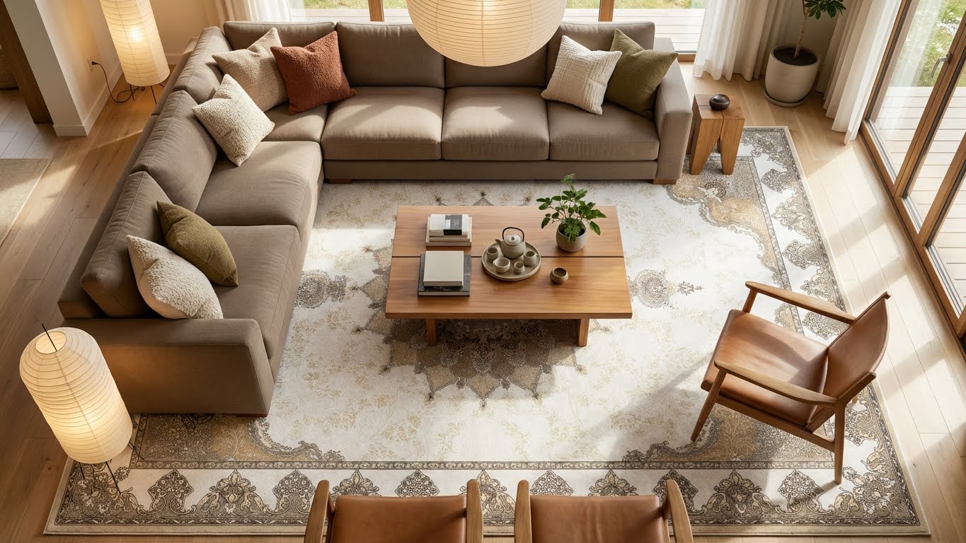 N_2330RO: Mẫu này thiên về cảm giác mềm và nghệ thuật hơn, các chi tiết họa tiết được xử lý theo hướng loang nhẹ để tạo chiều sâu cho không gian. Khi đặt dưới bàn trà hoặc sofa chờ, thảm giúp khu vực trở nên ấm và có điểm nhấn hơn.