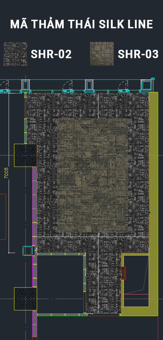 Thi công thảm văn phòng theo layout phối màu ThaiSilk Line