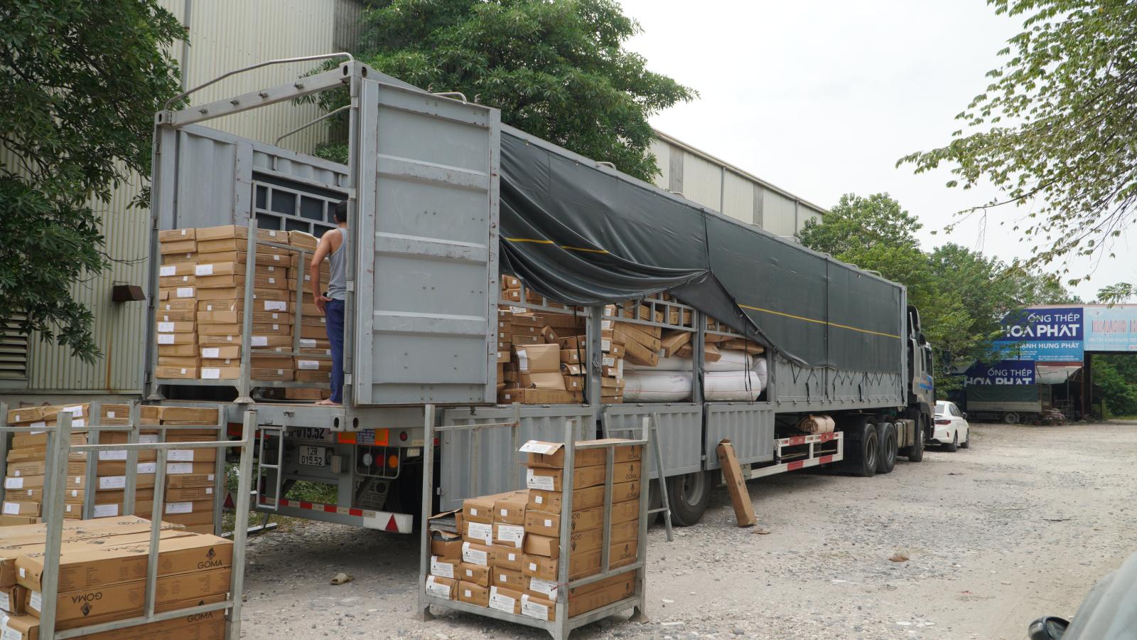 Vận chuyển thảm tấm 50cm x 50cm và 100cm x 25cm bằng các pallet và xe nâng chuyên dụng